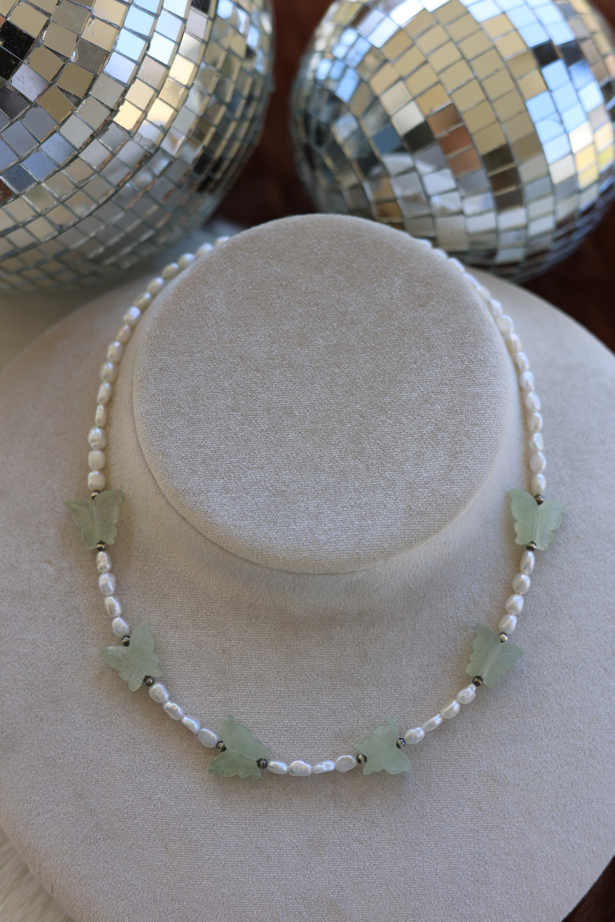 Freshwater Pearl & Jade Butterfly Necklace 16-18”