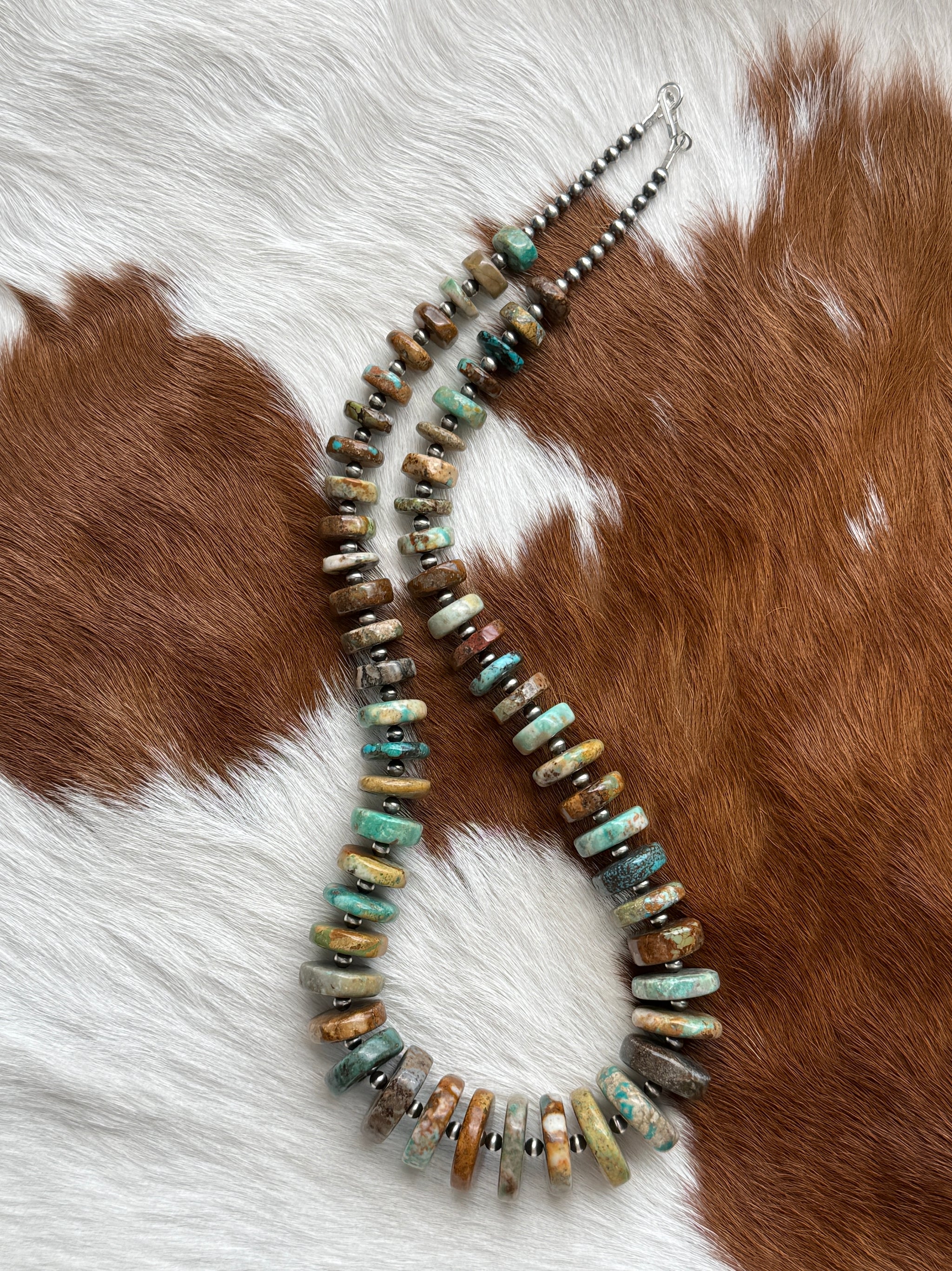 Necklace #4: 4mm Sterling silver pearls & Hubei Turquoise 23” S hook, no extender