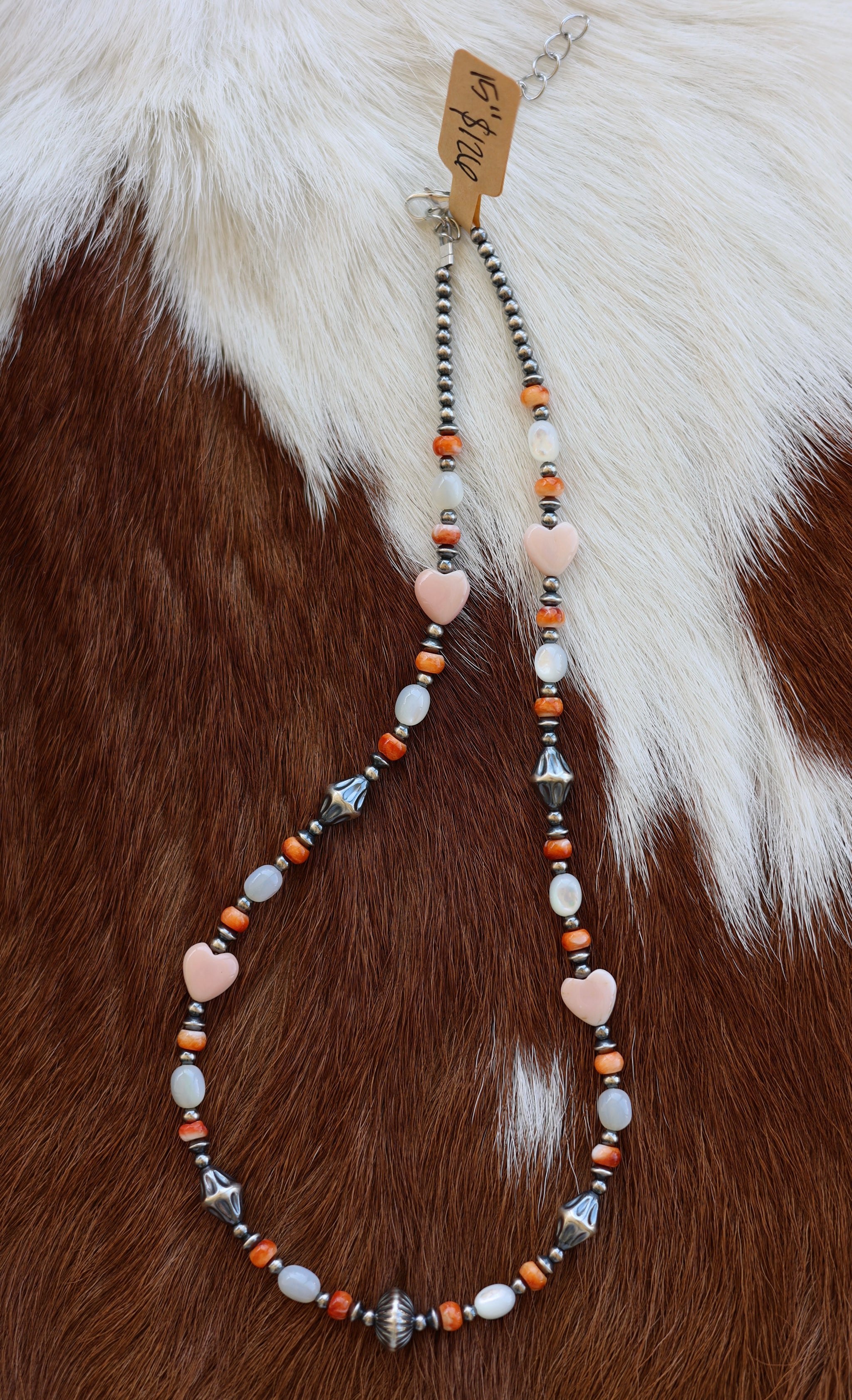 Pink Conch hearts, Orange Spiny Oyster, & Mother of Pearl